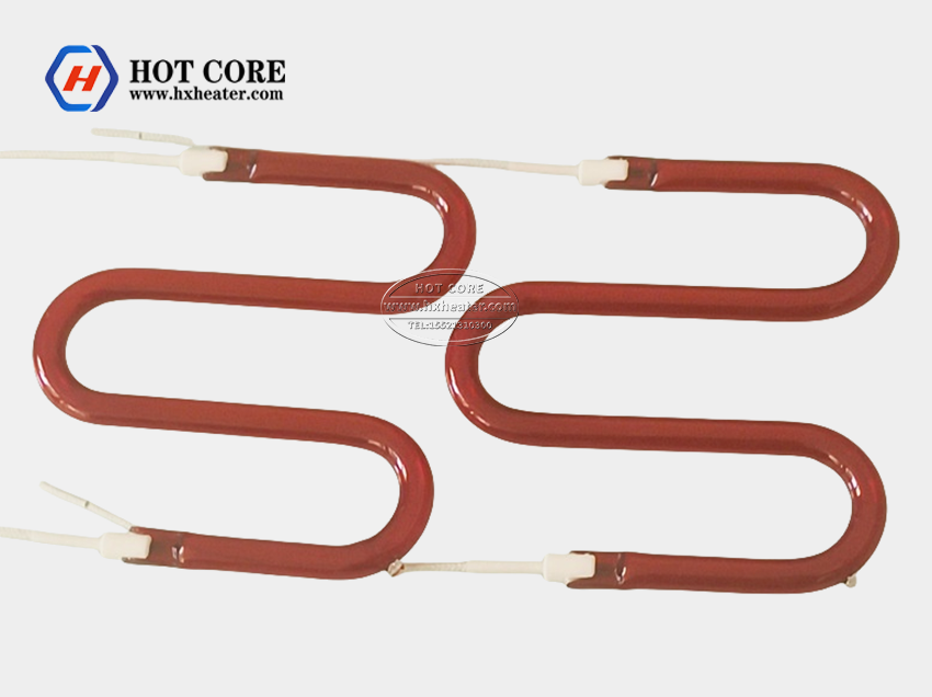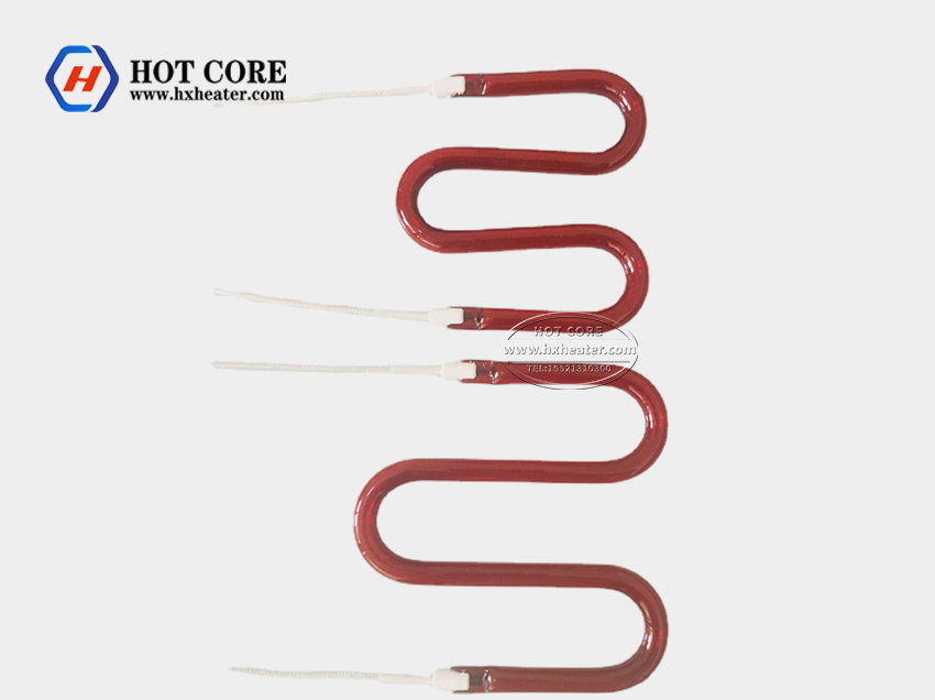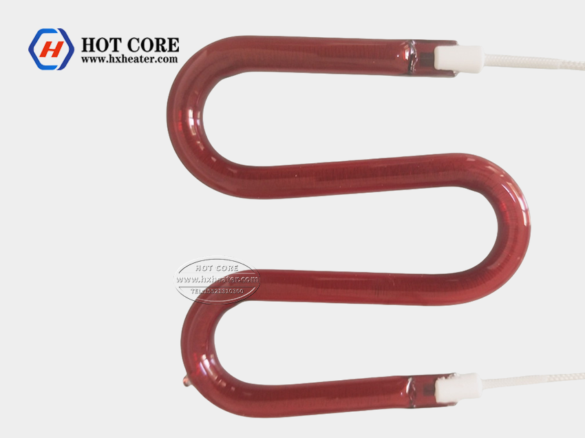 Short wave quartz infrared lamps are normally halogen heating lamps that put the tungsten filament in the quartz shell. The filament design and shell make the filament make the filament’s luminescence spectrum in the range of 2400-3500K. It can be made in a round lamp and flat lamp for different usage and requirement.