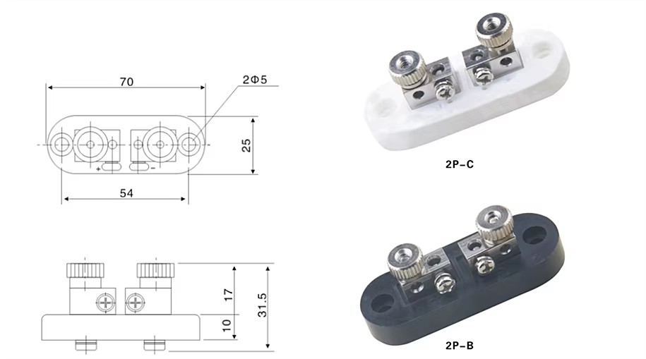 Terminal block Black bakelite 2P-B